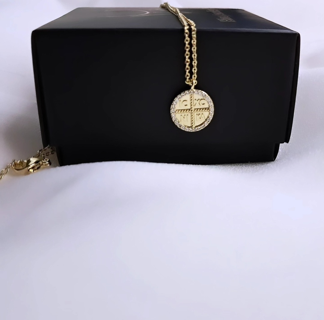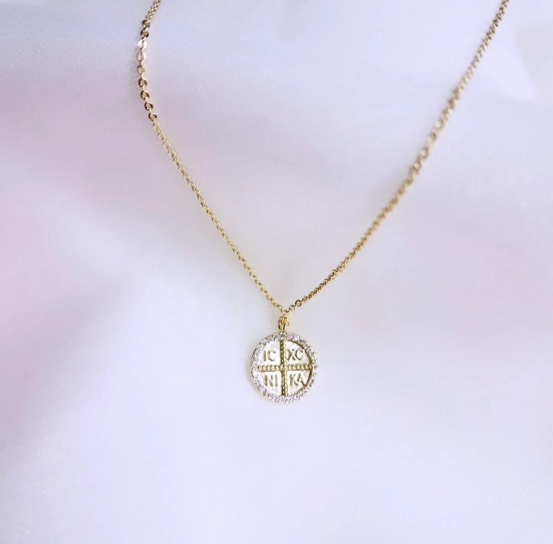 Κωνσταντινάτο φυλαχτό από ανοξείδωτο ατσάλι σε χρυσό με λεπτομέρειες από ζιργκόν.