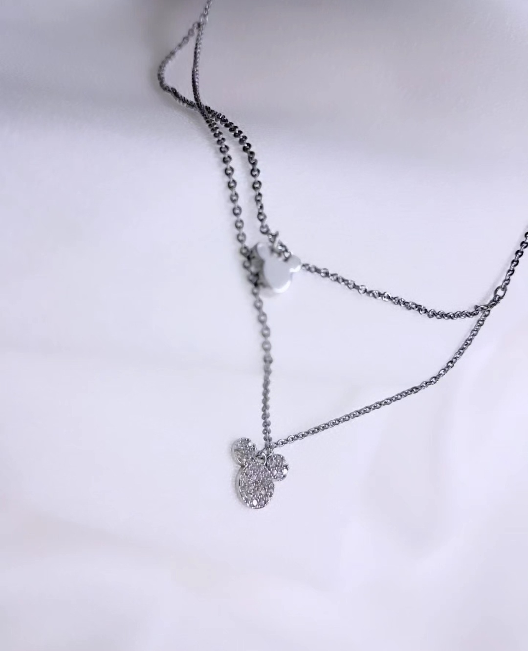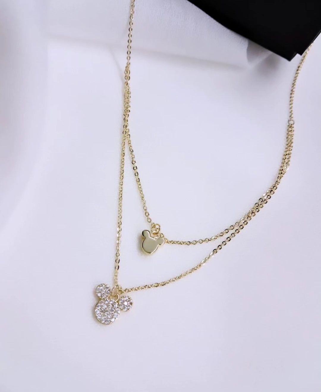 Γυναικείο κολιέ από ανοξείδωτο ατσάλι, δυο επιπέδων, σε χρυσό και ασημένιο χρώμα.